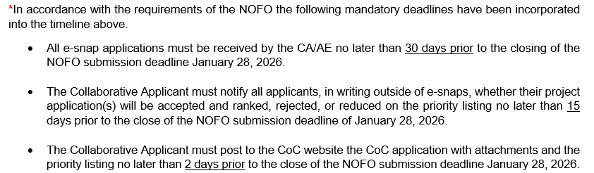 HUD has posted the new FY 2025-2026 Notice of Funding Opportunity (NOFO). Due to this update, the Merced CoC NOFO Competition shall resume as of December 22, 2025.